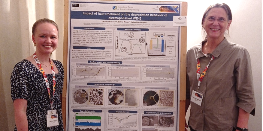 Auch das Labor Biomaterialien war mit Prof. Helga Hornberger und der Doktorandin und wissenschaftlichen Mitarbeiterin des Labors Jessica Kloiber vor Ort und lieferte mit dem Poster zum Thema „Impact of heat treatment on the degradation behaviour of electropolished WE43“ einen wichtigen Beitrag.