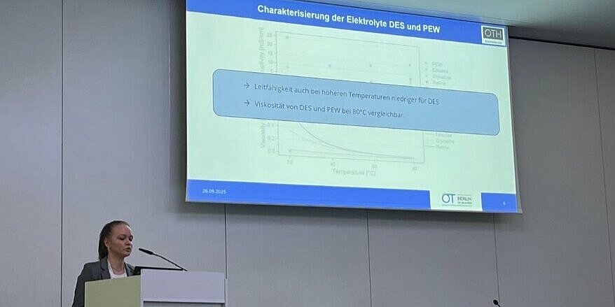 Jessica Kloiber, wissenschaftliche Mitarbeiterin und Doktorandin des Labors Biomaterialien, wurde in der Session „Zukunftsthemen in der Oberflächentechnik“ als Rednerin zu ihrer aktuellen Forschung - dem Einsatz neuartiger Elektrolyte zur Elektropolitur von Magnesiummaterialien - akzeptiert. Der 20-minütige Vortrag trug den Titel: „Elektropolitur von Magnesiumwerkstoffen mit Deep Eutectic Solvents: Einstellung von Prozessparametern und Oberflächeneigenschaften an einer Mg-Legierung“.